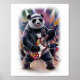 This panda is a truly rocker. He's playing rock and roll on stage.