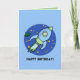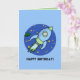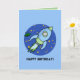 Illustration einer niedlichen Rakete im Weltraum, umgeben von Sternen und einem kleinen grünen Raumschiff. Entspricht auch der