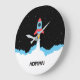 Rocket Launching in Outer Space Custom Name Große Wanduhr