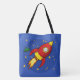 Illustration einer niedlichen Rakete im Weltraum, umgeben von Sternen, und einem kleinen grünen UFO-Raumschiff. Ideal für Kinder oder lustige Erwachsene.Copyright © 2016 Mariana Musa for Floating Lemons. Alle Rechte vorbehalten.