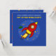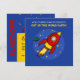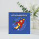 Illustration der niedlichen Rakete im Weltraum, umgeben von Sternen und einem kleinen grünen Raumschiff. Entspricht auch den