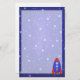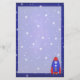 Ein blaues und rotes Raketenschiff steigt durch Raum, in den Liebhabern dieses Jungeraumes entwerfen an!