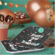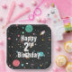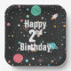 Raketenschiffe, Kometen und Planeten im schwarzen Weltraum zum 2. Geburtstag des Kindes.