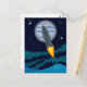 Szene, die ein Raketenschiff mit einem kosmischen Hintergrund von Nebulae, Monden und Planeten darstellt.
