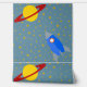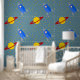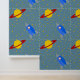 Rocketship to Saturn Design Wallpaper mit Sternen und anpassbarer Hintergrundfarbe.