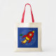 Illustration der niedlichen Rakete im Weltraum, umgeben von Sternen und einem kleinen grünen Raumschiff. Entspricht auch den