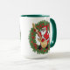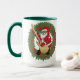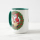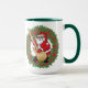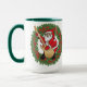 Der niedliche Weihnachtsmann mit E-Gitarre ist das Set auf einem grünen Heiligen Kranz mit Süßigkeiten.