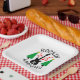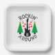 Niedliche Gitarrengrafik mit Weihnachtsbäumen, um das Weihnachtslied Rockin' rund um den Weihnachtsbaum zu repräsentieren.
