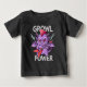 Dieser personalisierte, edgy Baby T - Shirt ist mit einem kubanischen Babymonster ausgestattet, das eine Mini-E-Gitarre spielt und die Metallhörner mit erbitterter Begeisterung aufflammt. Entworfen in fett formatierten Grafiken mit Konturen im Comic-Stil, Mohawk Flair, und dem stinkenden Slogan "Growl Power".