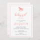 Die Rockpferd Baby Dusche Einladungen sind eine klassische und süße Einladung perfekt für eine Babydusche. In Korallen, die ein helles Rosa ist angezeigt. Die Rückseite jeder Einladung wird in einem schweizer Punktmuster in einer koordinierenden Farbe gedruckt.
