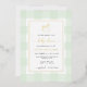 Diese Einladung beinhaltet ein klassisches Gingham-Design mit echten Goldfoliendetails. Die Überschrift des Skripts ist ein Bild, das nicht bearbeitet werden kann. Der andere Text ist vollständig editierbar. Für eine erweiterte Anpassung dieses Designs, wählen Sie einfach die Schaltfläche "Anpassen" oben.