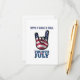 Hand mit Rock und Roll Hörner Symbol mit amerikanischer Flagge eingebettet in ihr. "Haben Sie eine Rock'n'Roll" oben und "Amerikanische Unabhängigkeitstag" unten.