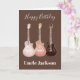 Für Ihren coolen Rockstar Onkel, ob er ein Gitarrist mit außergewöhnlichem Können ist oder ein Luftgitarrist, das ist die Karte für ihn. Cool Country Stil rustikale Illustrationen von drei semiakustischen Gitarren in leicht transluzent von Weiß, hellbraun und dunkelbraun Tönen auf einem gedämpften Tonhintergrund. Die Wörter "Happy Geburtday" können angepasst werden und Ihr Onkel kann mit der Vorlage hinzugefügt werden, um eine personalisierte Karte für Ihren musikalischen liebenden Onkel an seinem besonderen Tag zu erstellen. Original-Kunstwerk von Catherine Sweetman