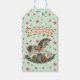 Frohe Weihnachtsgeschenk-Tag mit rockndem Pferd und Geschenke.