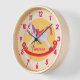 Niedliche, gelbe und rosa Mädchen Kinderzimmer rockenden Pferd Kunst Kinder Uhr. Passen Sie Ihren eigenen Namen an. Derzeit liest Vanessa. Einzigartig in Aquarellfarbe gemalt von der Künstlerin Sarah Trett.