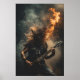 A guitarist engulfed in flames and smoke, capturing the pure adrenaline of a rock concert. The dynamic image conveys power and intensity, with vibrant details highlighting the passion for music and stage energy.