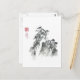Ein felsiger, figurativer Berg erhebt sich hoch - mit Bäumen übersät. Aus einem originalen Pinselgemälde von Ren Adams.