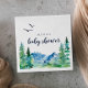 Diese felsigen Berg Babyduschen sind perfekt für eine Außendusche. Das Design zeichnet sich durch eine blau-grün gestrichene Wildnislandschaft mit Aquarellkiefern, Vögeln und Bergen aus. Personalisieren Sie die Servietten mit dem Namen der Mutter-zu-sein.