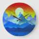 Rocky Mountain Golden Hour Sun Art Clock Schöne blaue Rocky Mountains mit der Sonne scheint in der goldenen Stunde mit Farben von rot, orange und gelb. In unserem Shop finden Sie weitere Wohngestaltung-Designs zu verschiedenen Produkten für Ihre Zuhause oder Hütte.