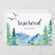 Dieses Rocky Mountain Hochzeit in Urlaubsort vorbehaltene Schild ist ideal für eine Hochzeit im Freien. Die Karte ist zweiseitig (beidseitig gedruckt). Das Design zeichnet sich durch eine blau-grün gestrichene Wildnislandschaft mit Aquarellkiefern, Vögeln und Bergen aus. Benutzen Sie diese Karten, um Stühle oder Tische bei Ihrer Hochzeitsfeier, Empfang oder jeder Veranstaltung zu reservieren.
