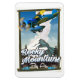 Rocky Mountains Vintager Reiseführer mit einem alten Vintagen Requisiten Flugzeug.