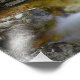 Foto-Druck von Wasser mit Bewegung-verwischt in einer Felsbucht in einem Wald in Norwegen mit einem gefallenen Baum als Brücke darüber.