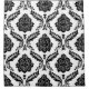 A vintage style decorative damask surface pattern influenced by rococo classical design in black detail on a white background.