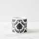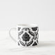 A vintage style decorative damask surface pattern influenced by rococo classical design in black detail on a white background.