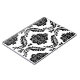 A vintage style decorative damask surface pattern influenced by rococo classical design in black detail on a white background.