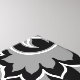 A vintage style decorative damask surface pattern influenced by rococo classical design in black and grey details on a white background.
