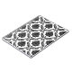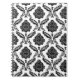 A vintage style decorative damask surface pattern influenced by rococo classical design in black detail on a white background.
