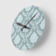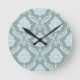 Rococo Damask Pattern Duck Egg Blue+Teal Runde Wanduhr