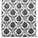 A vintage style decorative damask surface pattern influenced by rococo classical design in black and grey details on a white background.