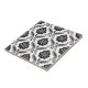 A vintage style decorative damask surface pattern influenced by rococo classical design in black and grey details on a white background.