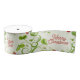 Wrap your presents in the charming elegance of the Rococo Revival era! This exquisite custom Grosgrain Ribbon features a delicate, all-over pattern of wild strawberries, clover leaves, and graceful sage green scrolling vines. The design's light, airy aesthetic, reminiscent of an 18th-century Toile de Jouy or Watteau drawing, is perfect for adding a touch of vintage sophistication to any gift. Personalize the prominent circular spaces with your family name, a special occasion message (like "Merry Christmas" or "Happy Birthday"), or a monogram to create truly unique and memorable packaging. Ideal for Christmas, birthdays, anniversaries, or any sophisticated celebration.