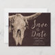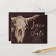 Laden Sie Ihre Gäste zu Ihrem besonderen Tag mit diesem Land Western Bauernhof rodeo Bull Schädel Haushalt Save the Date Hochzeitseinladungen. Rustikal braun Textur Hintergrund, um Ihre Informationen auf. Bildrecht Marg Seregelyi Fotografie.