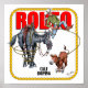 Rodeo Kalb Seiler in Schwierigkeiten, während sein Pferd fragt, was los ist.