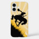 Colorful sunset cowboy on bucking horse on iPhone cases. Perfect for horse lovers, cowboys, cowgirls and riders. ADD your own text to customize. Click Customize button.