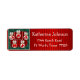 Western Rücksendeadressen-Aufkleber mit Rodeo-Veranstaltung Weihnachtsschmuck auf rotem Hintergrund. Der in das Design integrierte Text sagt Frohe Weihnachten. Der andere Text muss auf Ihre persönlichen Daten geändert werden. Sehen Sie mehr Western-Urlaubsszenarien im Rodeo Days Store.