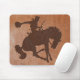 Eine Rodeoreiter-Silhouette mit dem Blick des prägeartigen Leders.