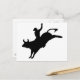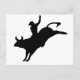 Ein Rodeo-Cowboy, der auf einem Bullen reitet.