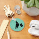 Silhouette eines sportlichen Cowgirl Fass Rennen mit ihrem Pferd. Aufregende Darstellung von Rodeo-Aktionen. Hintergrund ist eine minzgrüne Farbe. Ideal für Rodeo-Fans und Pferdefreunde.