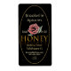 Schwarzes Etikett mit dem Wort HONEY geschrieben und in metallischem Gold auf schwarzem Hintergrund mit doppelter goldener Grenze reflektiert. Wildblume. Vorkalkulierte Liste der Nettogewichtsumwandlungen von Honig. Der deskriptive Text lautet "roh, rein", kann aber in "roh, lokal" oder "EST, 2015" usw. geändert werden.