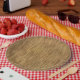 Rohes Imitat Holz im Hintergrund in natürlicher Fa Pappteller