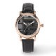 Uhr, Klassische Damenuhr mit schwarzen Lederarmband