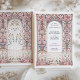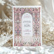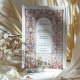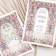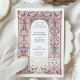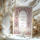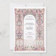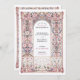 Diese exquisite Hochzeitseinladung besticht durch einen von Rokoko inspirierten filigranen Bogen, der mit eleganten Blumenmotiven in sanften Pastelltönen aus Blau, Blau und Gold geschmückt ist. Die zarten Ziermuster, die an die europäische palastartige Dekoration erinnern, schaffen eine zeitlose und raffinierte Ästhetik, die sich perfekt für elegante und romantische Hochzeiten eignet. Die raffinierte Typografie ergänzt den verzierten Rahmen und erhöht die Grandeur dieses Designs. Ideal für Paare, die eine luxuriöse und künstlerische Hochzeitsstätte suchen, die den Charme der alten Welt und die Eleganz des Ortes widerspiegelt.