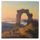 Dieses Design zeigt ein Gemälde des deutschen Künstlers Andreas Achenbach (1815-1910), der mit der Romantik-Bewegung und der Düsseldorfer Kunstschule in Verbindung stand und Roland’s Arch, einen berühmten, aus Stein und Ziegeln gebauten Bogengang darstellt. Es liegt auf einem Hügel hoch über dem Rheintal in Deutschland. Der Bogen ist in deutscher Sprache als "Rolandsbogen" bekannt. Ein Reisender kann hier stehend vor dem Bogen gesehen werden und den majestätischen Blick auf den Rhein bewundern, den man durch ihn sehen kann. Es ist ein schöner roter Sonnenuntergang am Himmel. Das Originalwerk wurde 1834 gemalt.