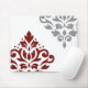 Rolle-Damast-Kunst I rot u. Grau auf Weiß Mousepad