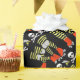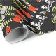 themenorientierte Geschenkverpackung Rollenderbys. Rolle des Verpackungspapiers wird mit einem diagonalen Streifen von Rollenderby-Beinen in den schwarzen und gelben gestreiften Strümpfen, in den roten Skaten und in den Reihen der Mörderbienen und -schädel gedruckt.