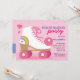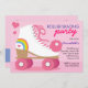 Rosa Rollen-Skaten-Geburtstags-Party Einladungen mit Regenbogen und Herzen.
